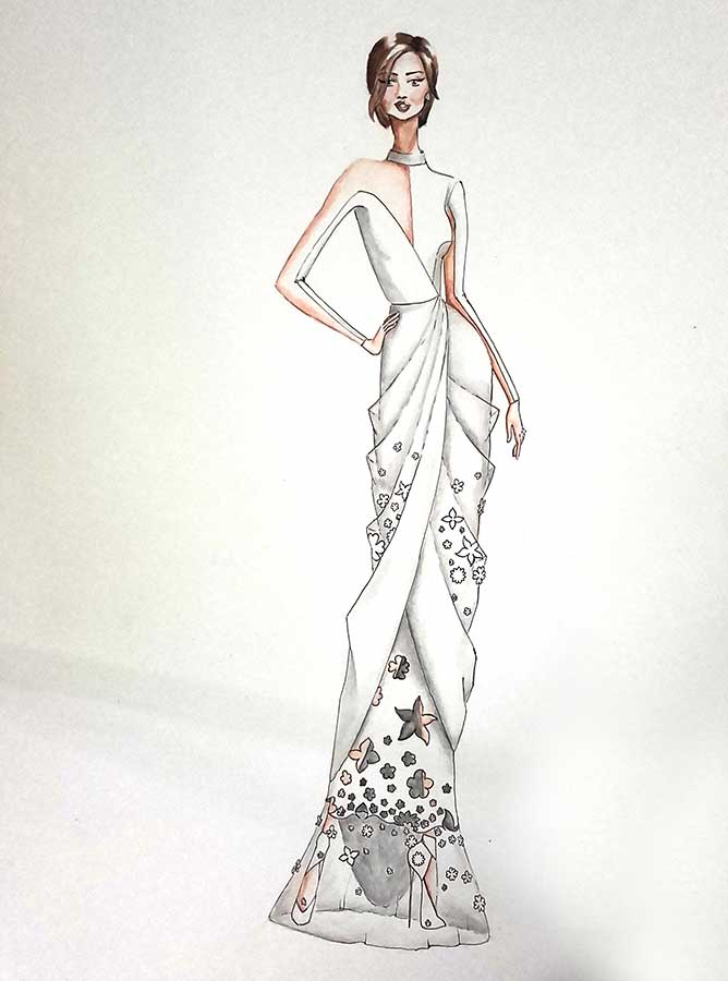 Diseño de vestido para la alfombra roja de los Premios Platino 2017.